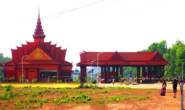 This is the Cambodia – Laos border. The immigration counter is just a table in a small restaurant. The immigration officer will collect cash in US dollar and issue Visa to those who require it to enter Laos. I do not require the Visa but I paid US$10 for the girl to take me over with the motor bike. The rest of the backpackers took a slow walk from Cambodia to Laos, about 2km.